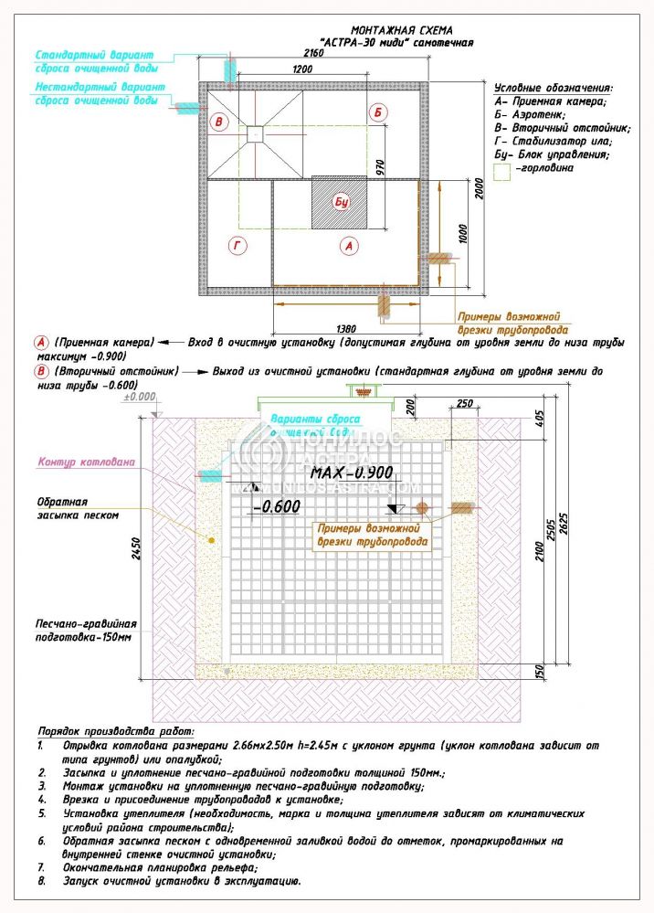 Глубина врезки подвод. магистрали: 80 - 100 см
