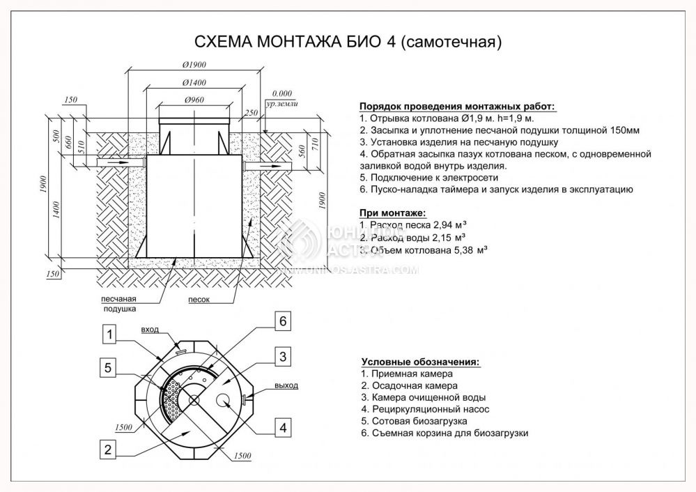 Септик Юнилос Астра 4 монтируется в зданиях, в которых проживает 4 человека с ежесуточным использованием воды в размере до 800 литров. Разрешается установка одного унитаза, раковины, умывальника и душевой кабины.