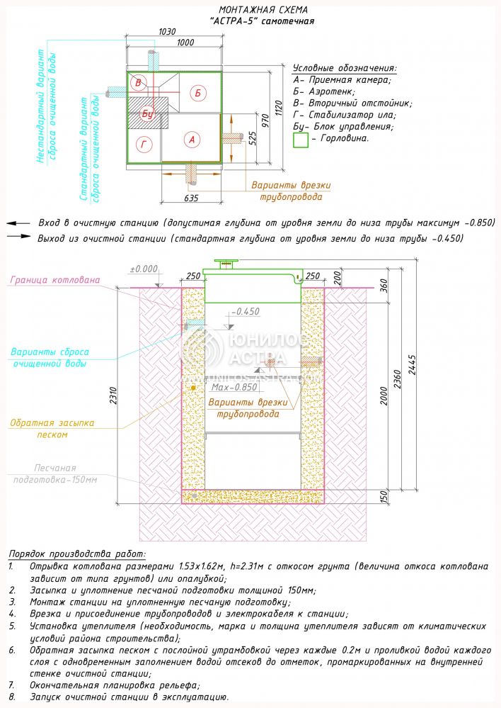 • Септик Астра 5 не нуждается в консервации на зимний период.