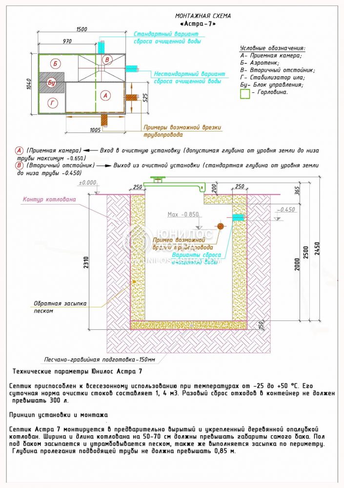Септик Юнилос Астра 7 имеет некоторые отличительные особенности: