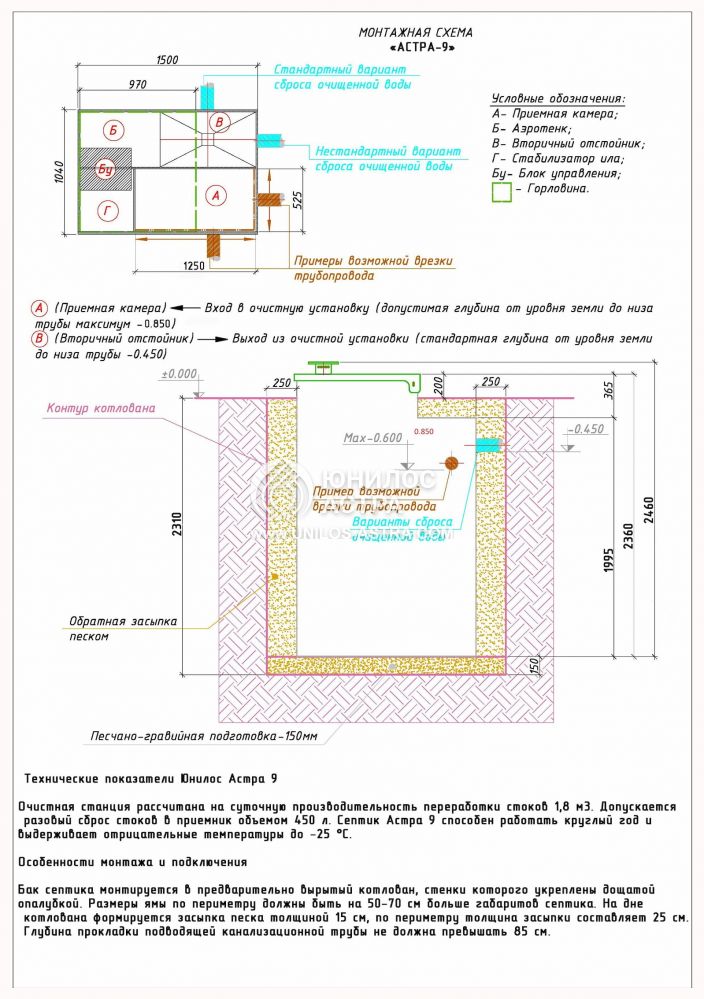 Насос для откачки: нет (самотечный сброс)