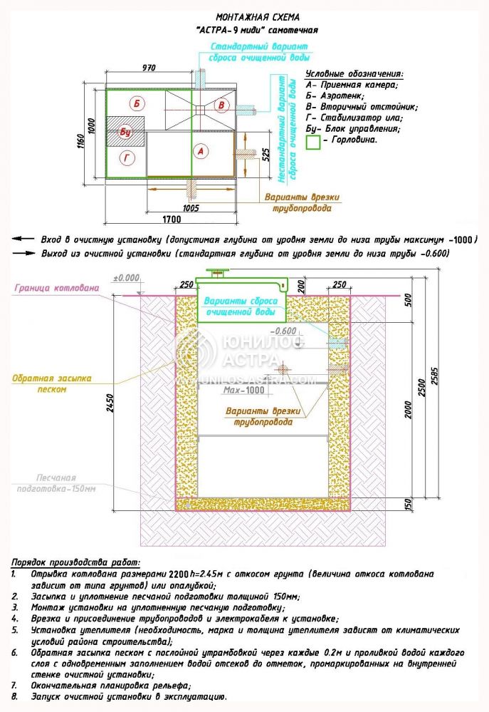 Насос для откачки: нет (самотечный сброс)